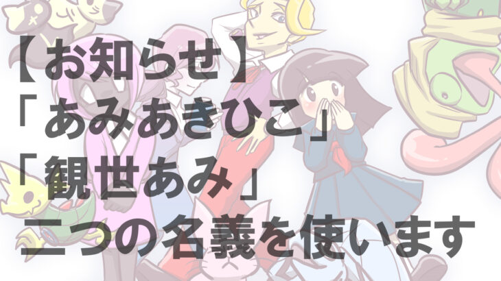 【お知らせ】「あみあきひこ」「観世あみ」二つの名義を使います